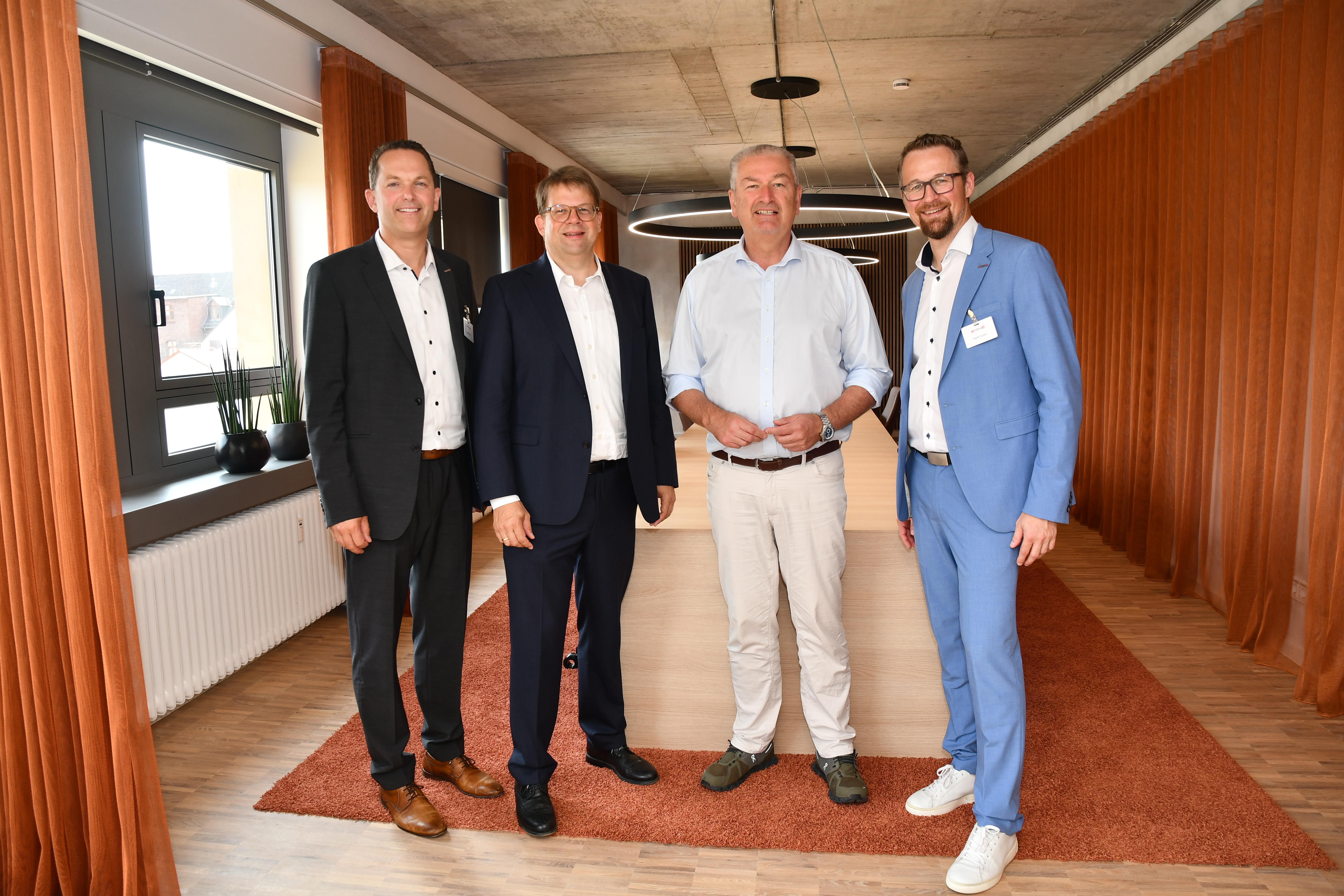 ekom21-Geschäftsführer Björn Brede und Martin Kuban (links und rechts) sowie Fuldas Oberbürgermeister Dr. Heiko Wingenfeld und Landrat Bernd Woide (mitte, v.l.n.r.)